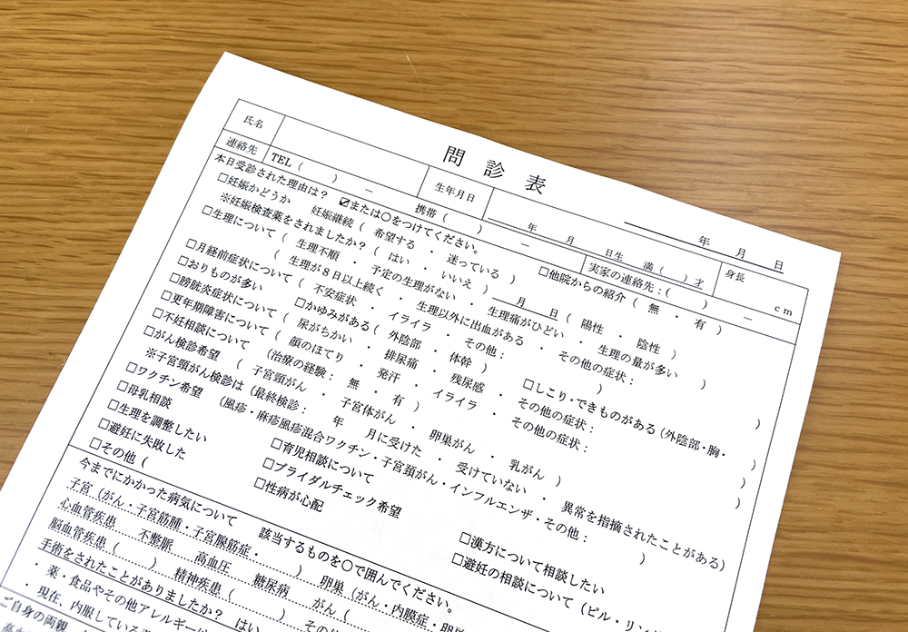 問診票をダウンロード頂き、ご記入いただいた書類を来院時にお持ちください。